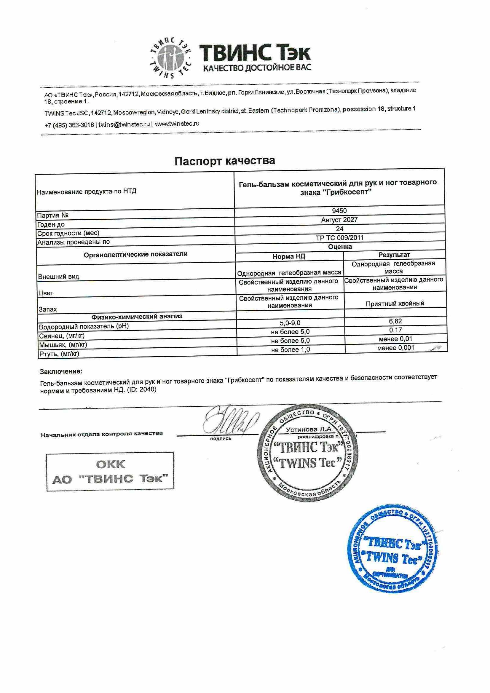 Гель-бальзам косметический ГРИБКОСЕПТ - противогрибковый препарат, способствует снижению воспаления, нормализует микрофлору. Обладает антисептическим и ранозаживляющим свойствами. Снимает зуд. Оказывает дезодорирующее действие.