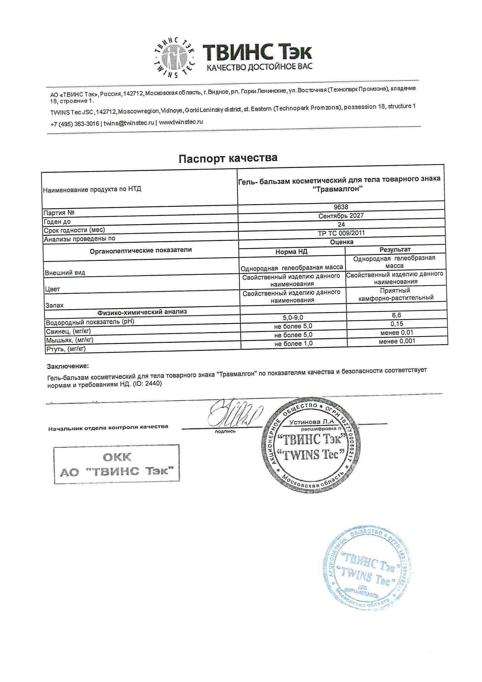 Гель-бальзам косметический ТРАВМАЛГОН обладает согревающим действием, способствует быстрому снятию боли. Уменьшает отечность при спортивных травмах и растяжениях. Снимает напряжение и усталость в мышцах. Увеличивает кровоток и облегчает удаление раздражающих веществ (молочной кислоты). Способствует снижению воспалительного процесса, уменьшению отеков и рассасыванию гематом.