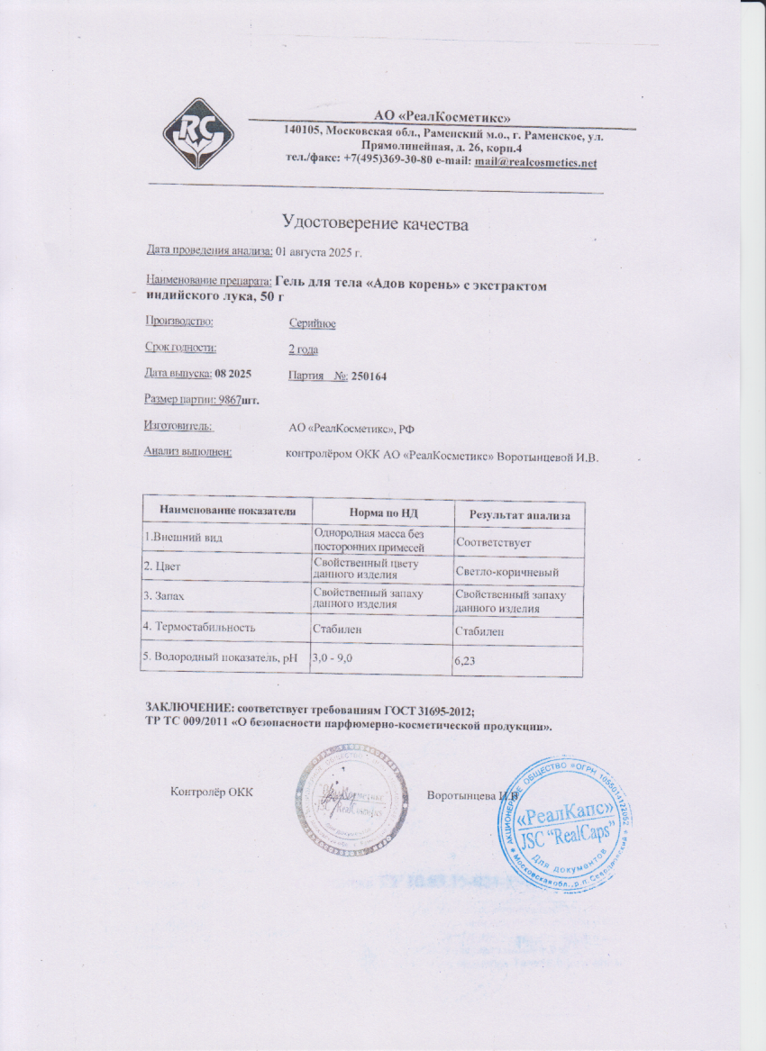 Адов корень с экстрактом индийского лука гель для тела, 50 г