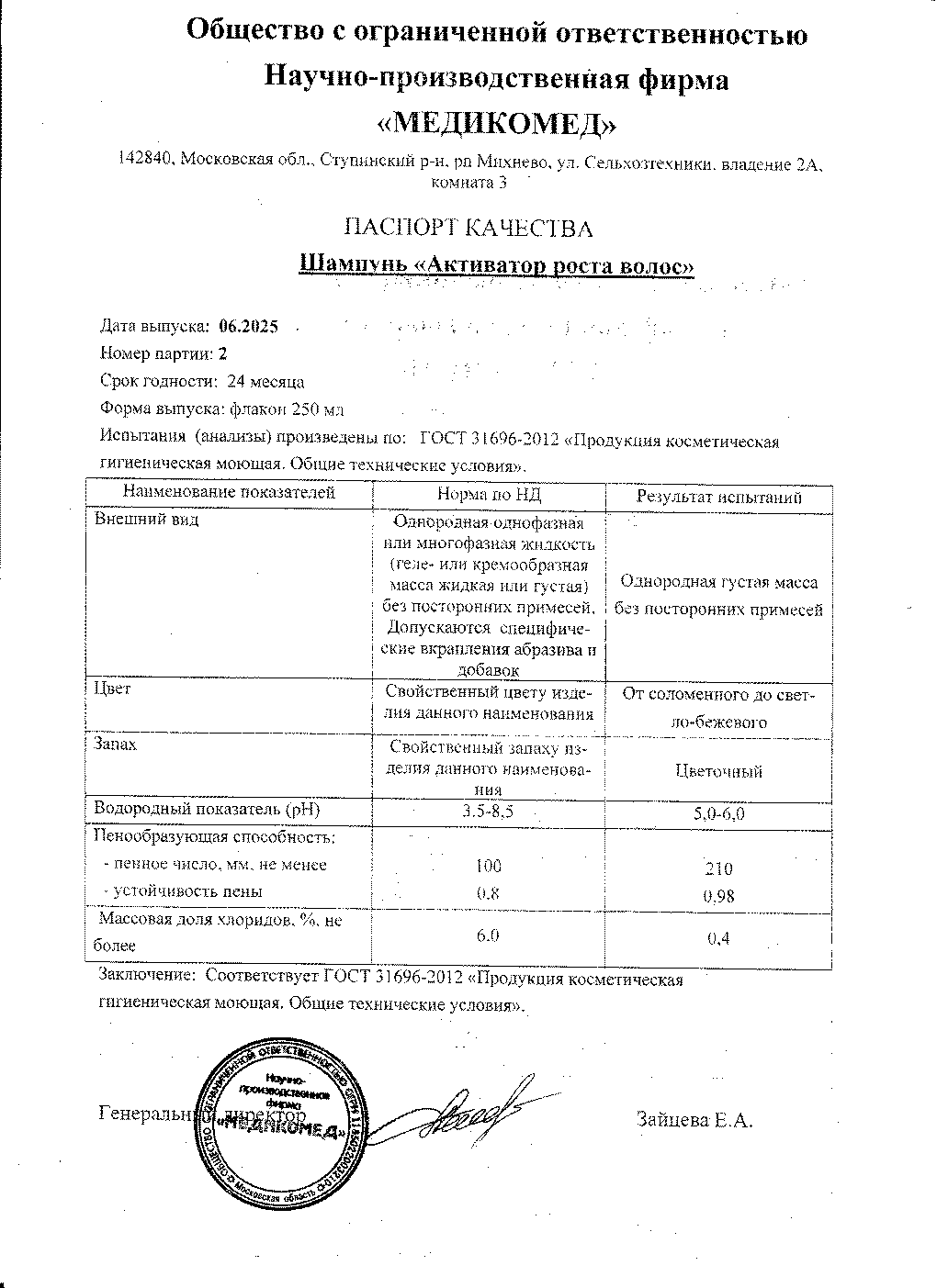 Читать далееАктиватор роста волос с гиалуроновой кислотой шампунь, 250 мл, "МедикоМед®", флакон