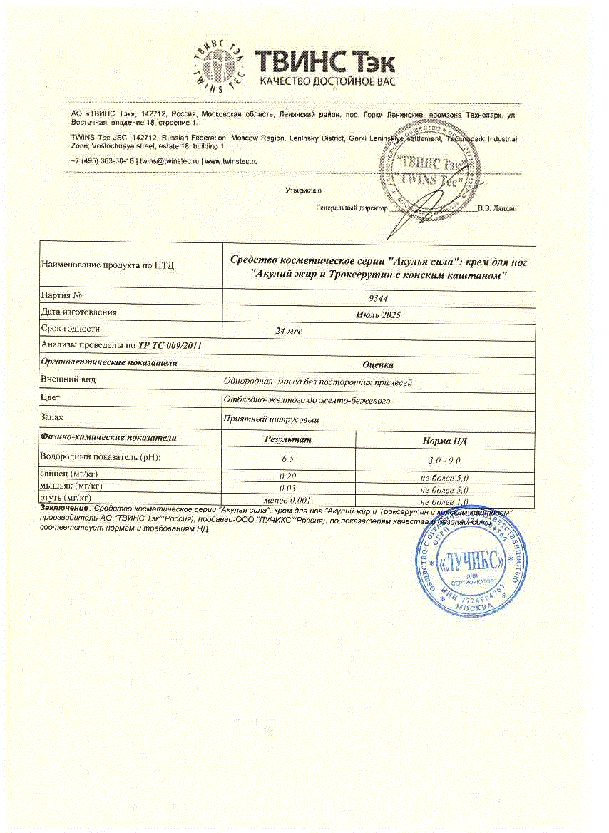 Акулий жир - Акулья Сила Троксерутин с конским каштаном крем д/ног от сосуд. сеточки и варикоза 75 мл