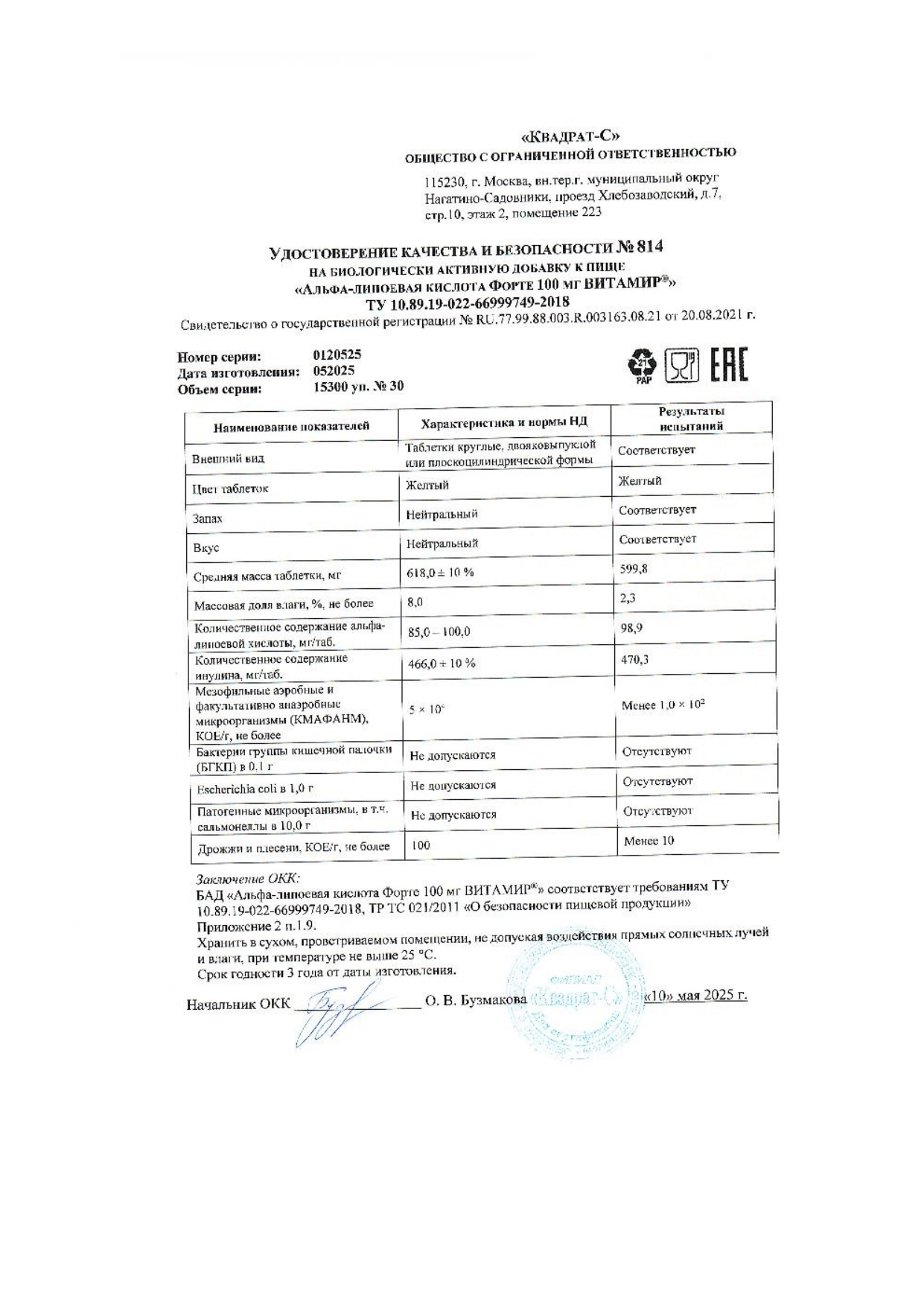 Альфа-липоевая кислота Форте 100 мг "ВИТАМИР®" - БАД, № 30 таблеток х 618 мг