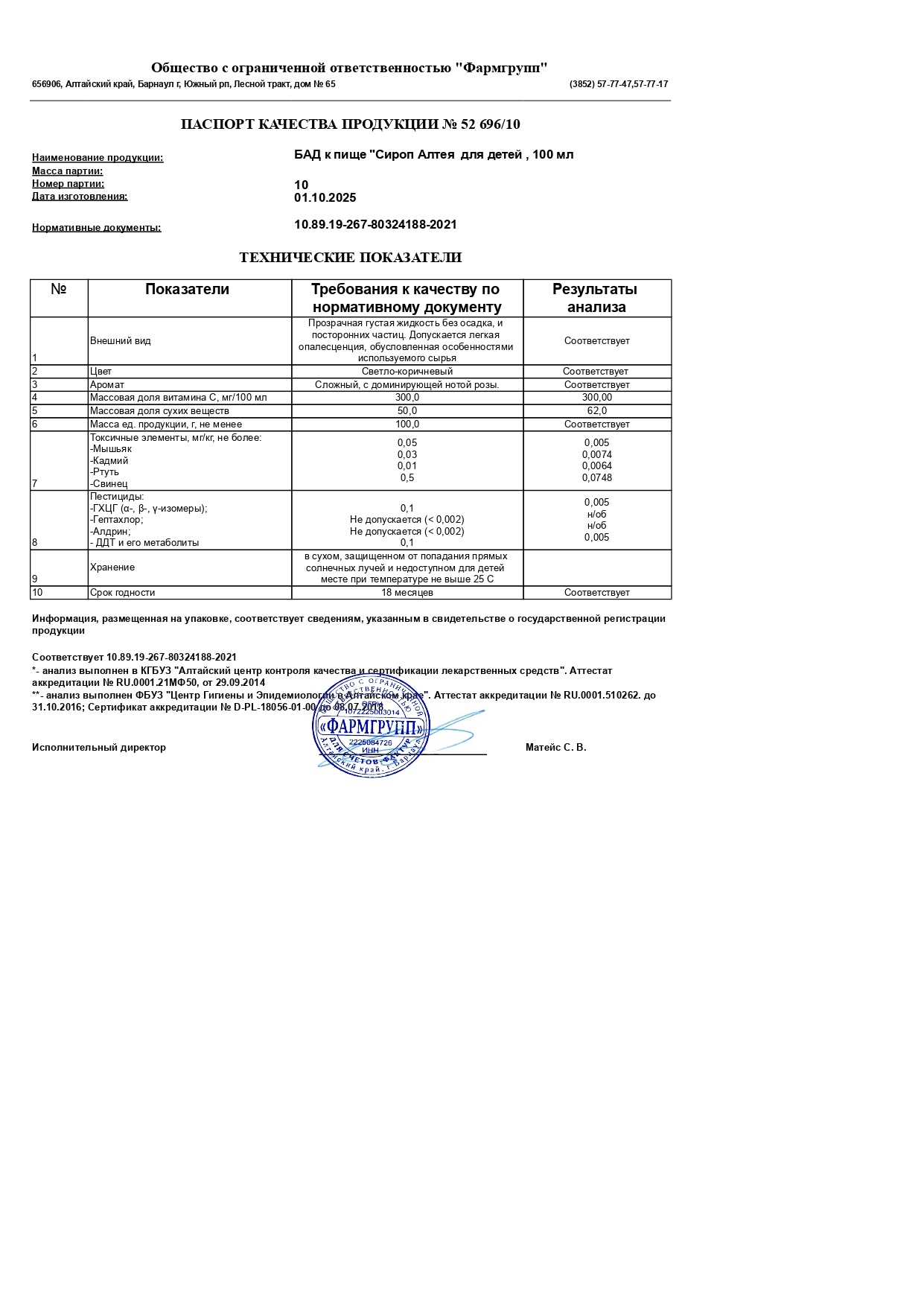 Алтея сироп для детей 100 мл БАД "Фармгрупп"