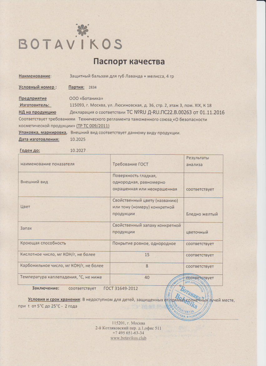 Читать далееБальзам для губ Защитный, 100% растительный, Лаванда + мелисса, 4г "Botavikos"
