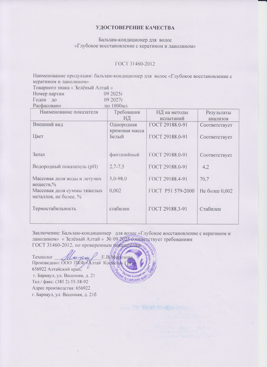 Читать далееБальзам-кондиционер для волос «Глубокое восстановление» с кератином и ланолином 1000 мл "Зеленый Алтай"