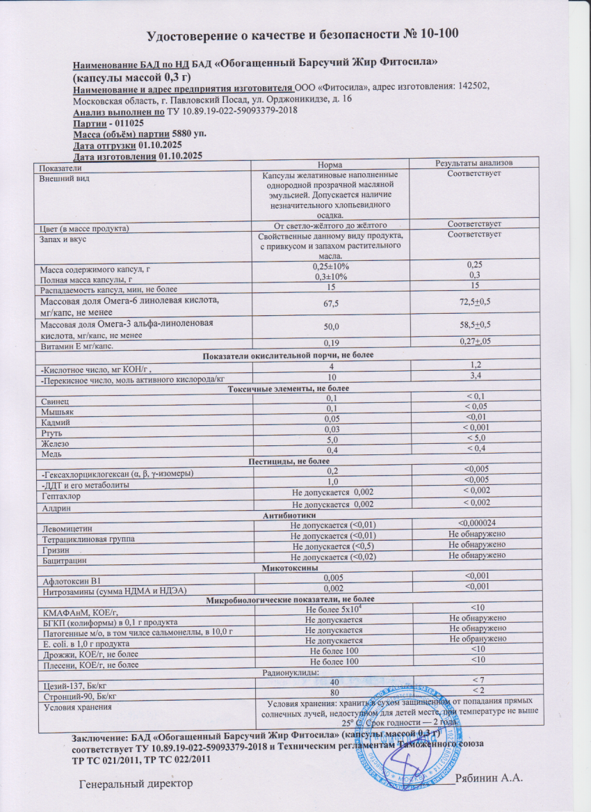 Барсучий жир обогащенный (100 капсул) - эффективный препарат, который прошел клинические исследования и соответствует требованиям ГОСТ.