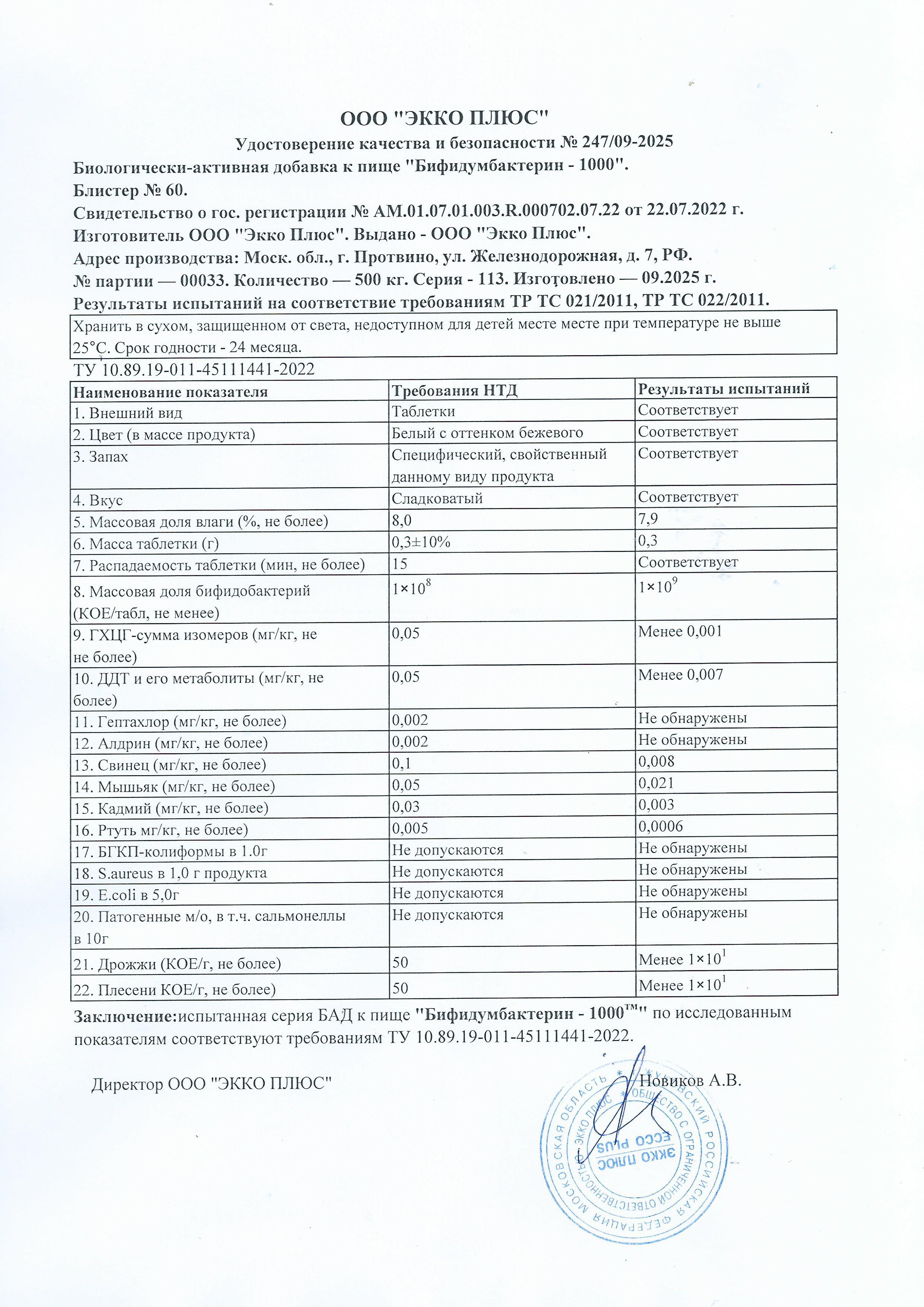 Бифидумбактерин-1000 БАД, № 60 табл. х 0,3 г