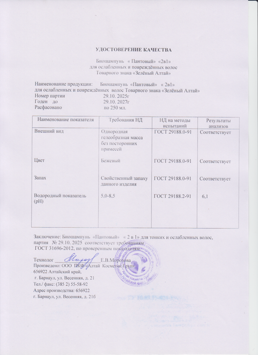 Читать далееБиошампунь и кондиционер "Пантовый" 2 в 1, 250 мл, т. з. "Зеленый Алтай"