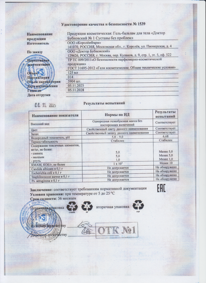 Все характеристикиБубновский №1 Суставы без проблем гель-бальзам для тела 125мл