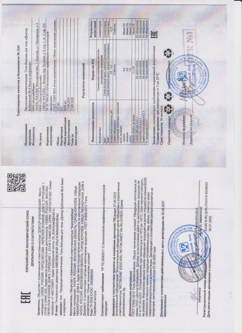 Все характеристикиБубновский №6 Змея и скорпион гель-бальзам для тела 125мл
