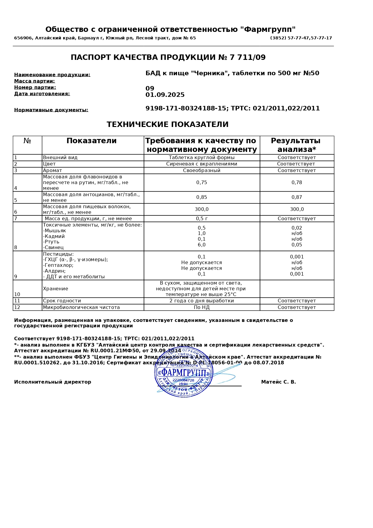 Все характеристикиЧерника табл. 0,5 г №50 БАД "Фармгрупп"