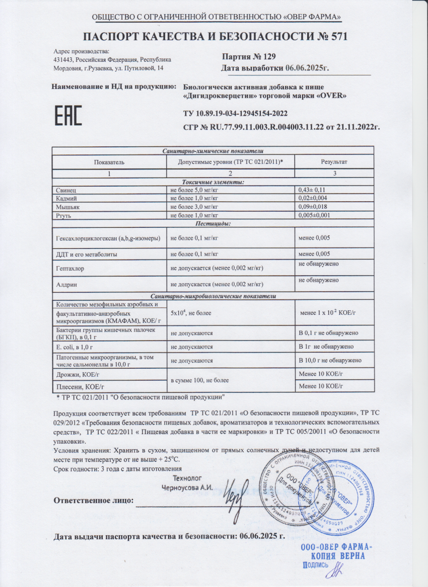 Читать далееДигидрокверцетин 60 капсул (OVERVit) БАД