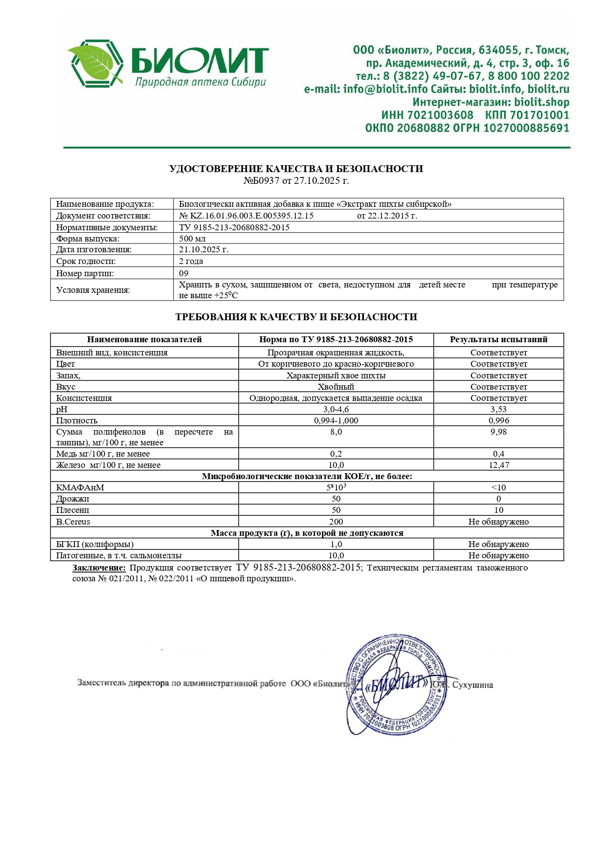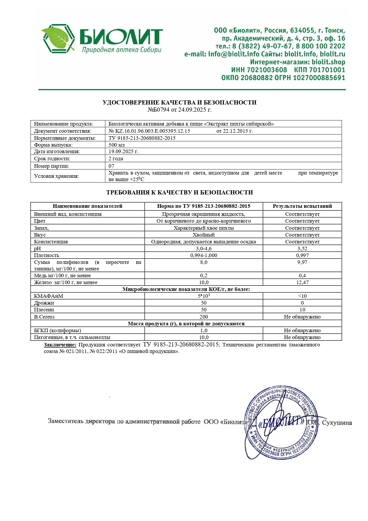 Экстракт пихты сибирской 0,5л БАД "Биолит"