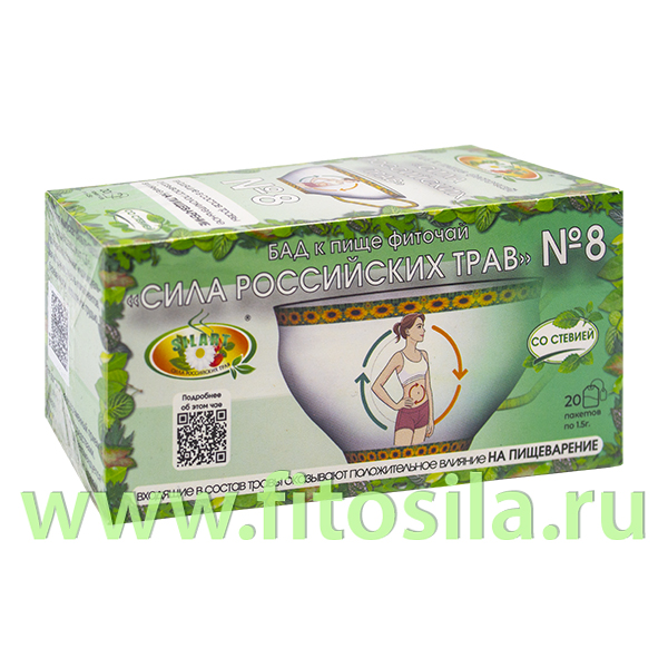Фиточай "Сила российских трав" № 8: при болях в кишечнике (ветрогонный), БАД, 20 ф/п х 1,5 г