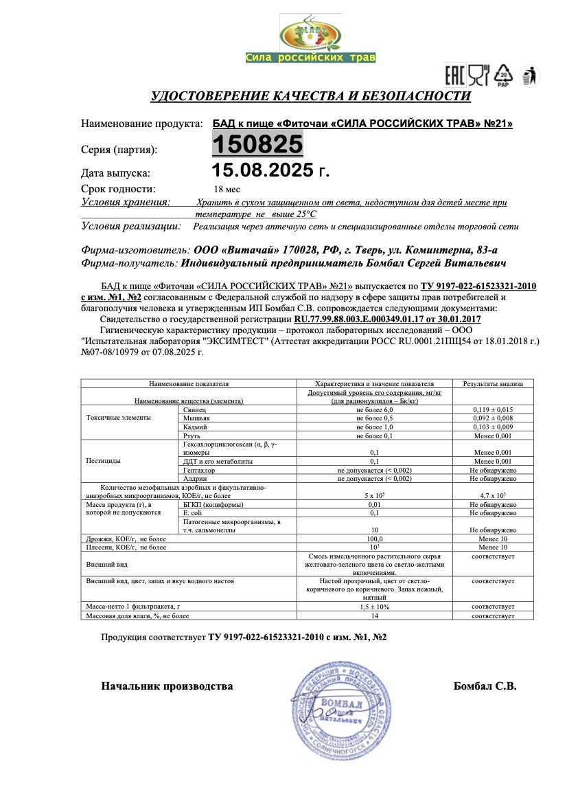 Читать далееФиточай "Сила российских трав" №21: от отечности, БАД, 20 ф/п х 1,5 г