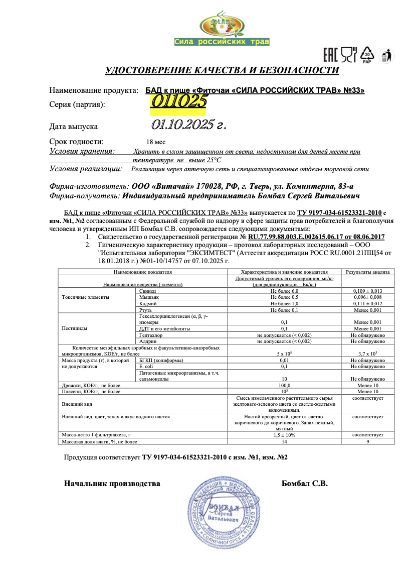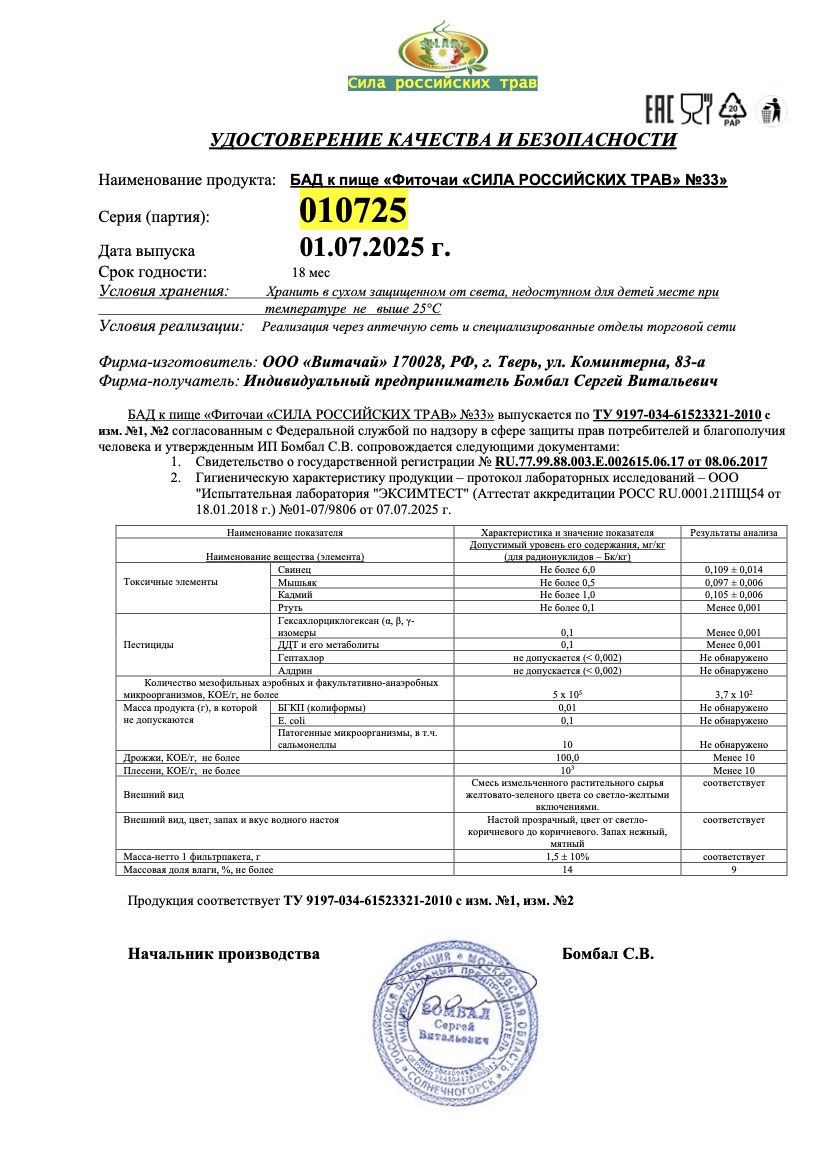 Читать далееФиточай "Сила российских трав" №33: от геморроя, БАД, 20 ф/п х 1,5 г