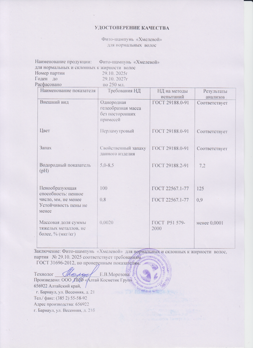 Читать далееФитошампунь "Хмелевой", 250 мл, т. з. "Зеленый Алтай"