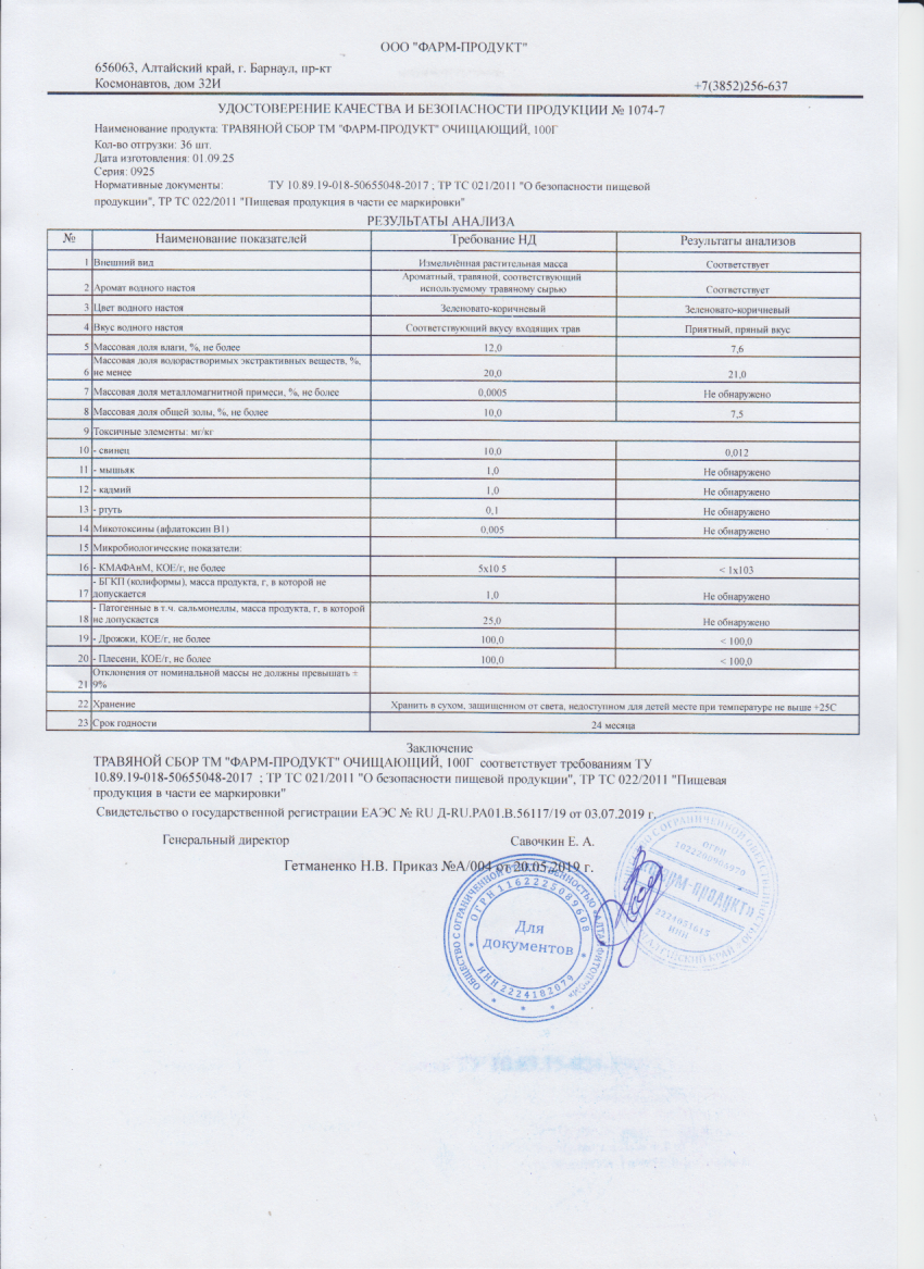 Читать далееТравяной сбор Алтайский "Очищающий" 100 г ТМ "Фарм-продукт"