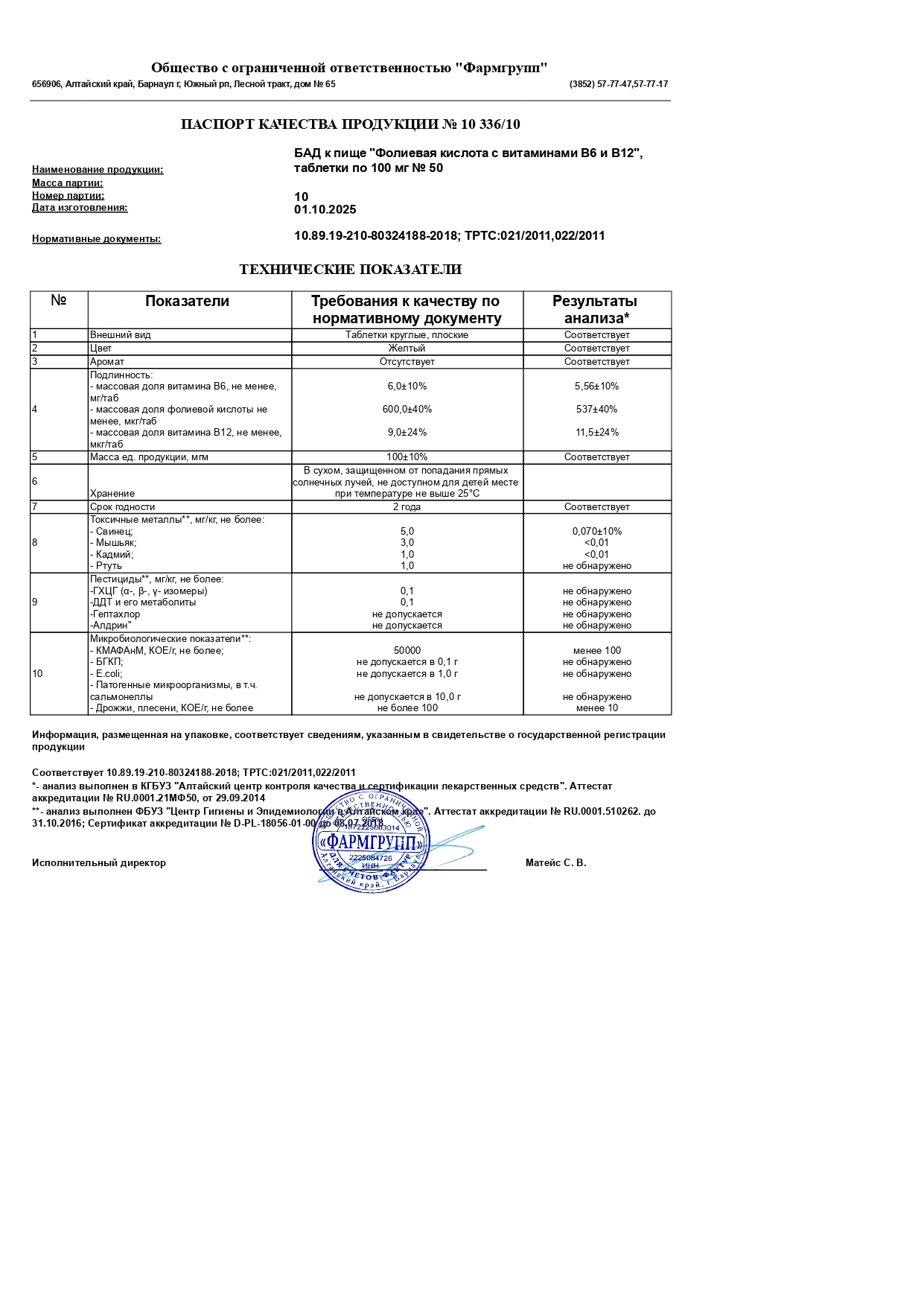Фолиевая кислота, табл. 0,1 г №50 БАД "Фармгрупп"