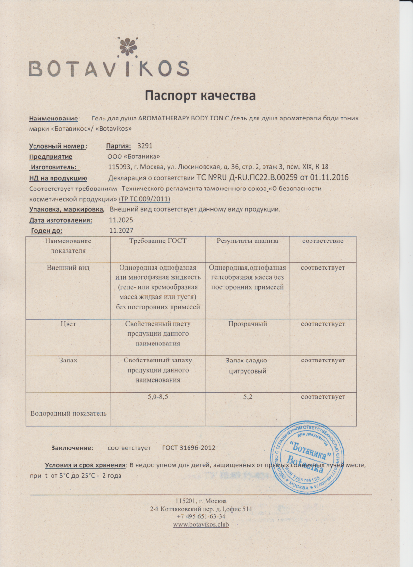 Читать далееГель для душа ароматерапи боди тоник / Aromatherapy Body Tonic, 200 мл, "Botavikos"