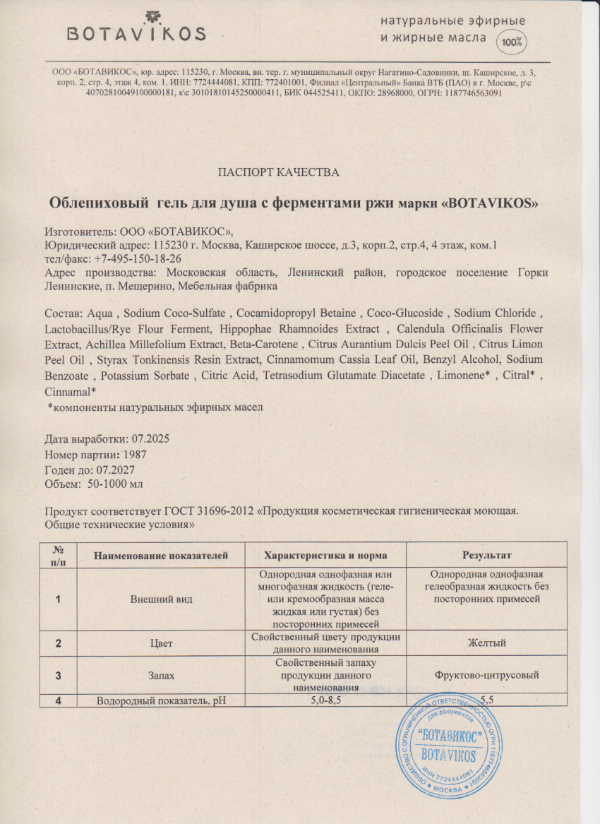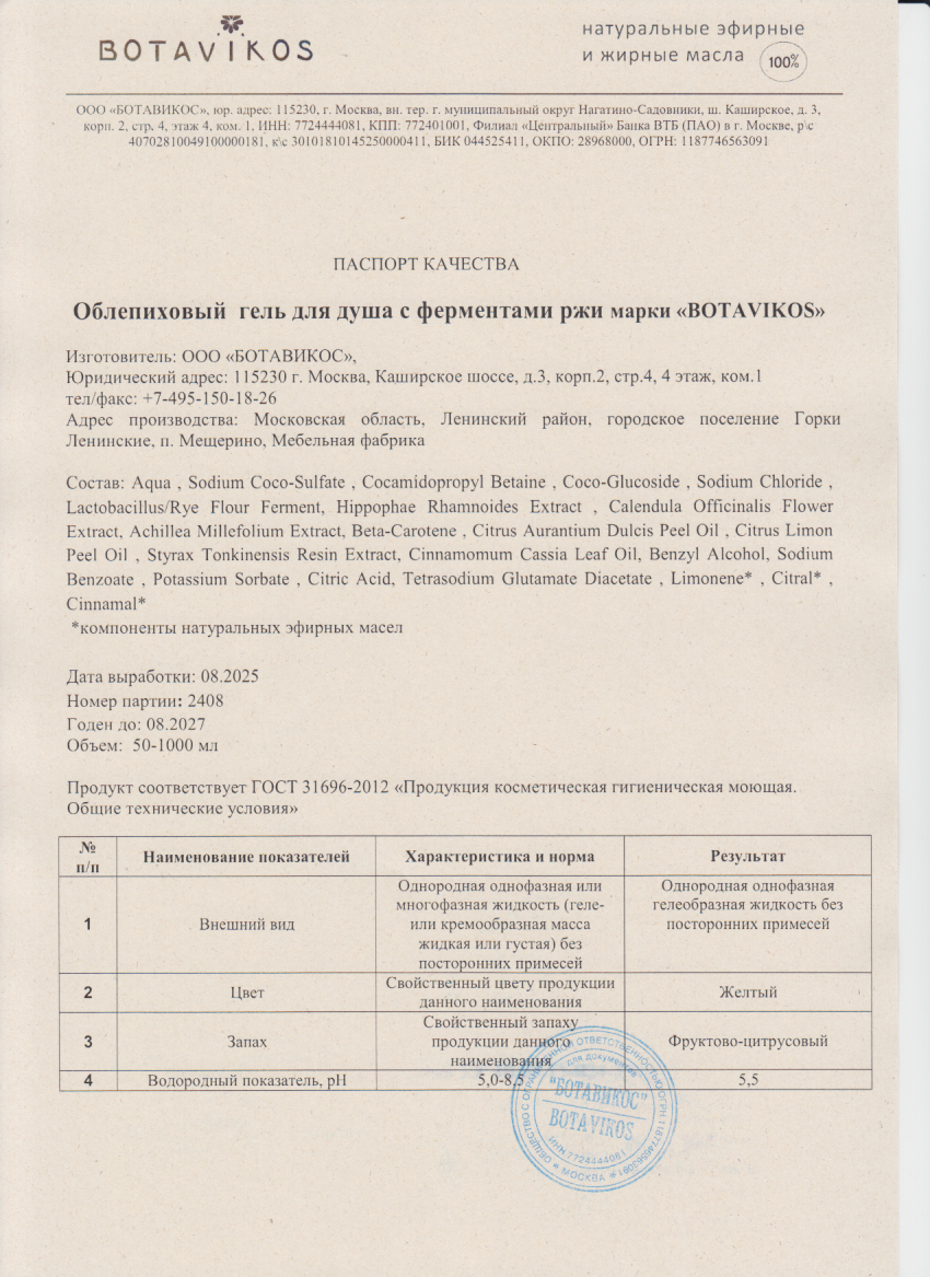 Читать далееГель облепиховый для душа с ферментами ржи. Защита и увлажнение, 470мл "Botavikos"