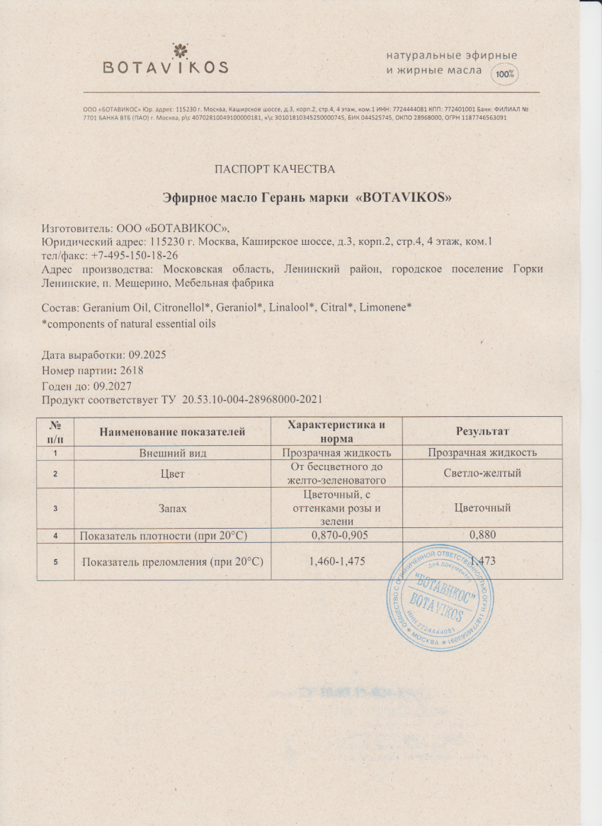 Герань 100% эфирное масло 10 мл,"Botavikos"