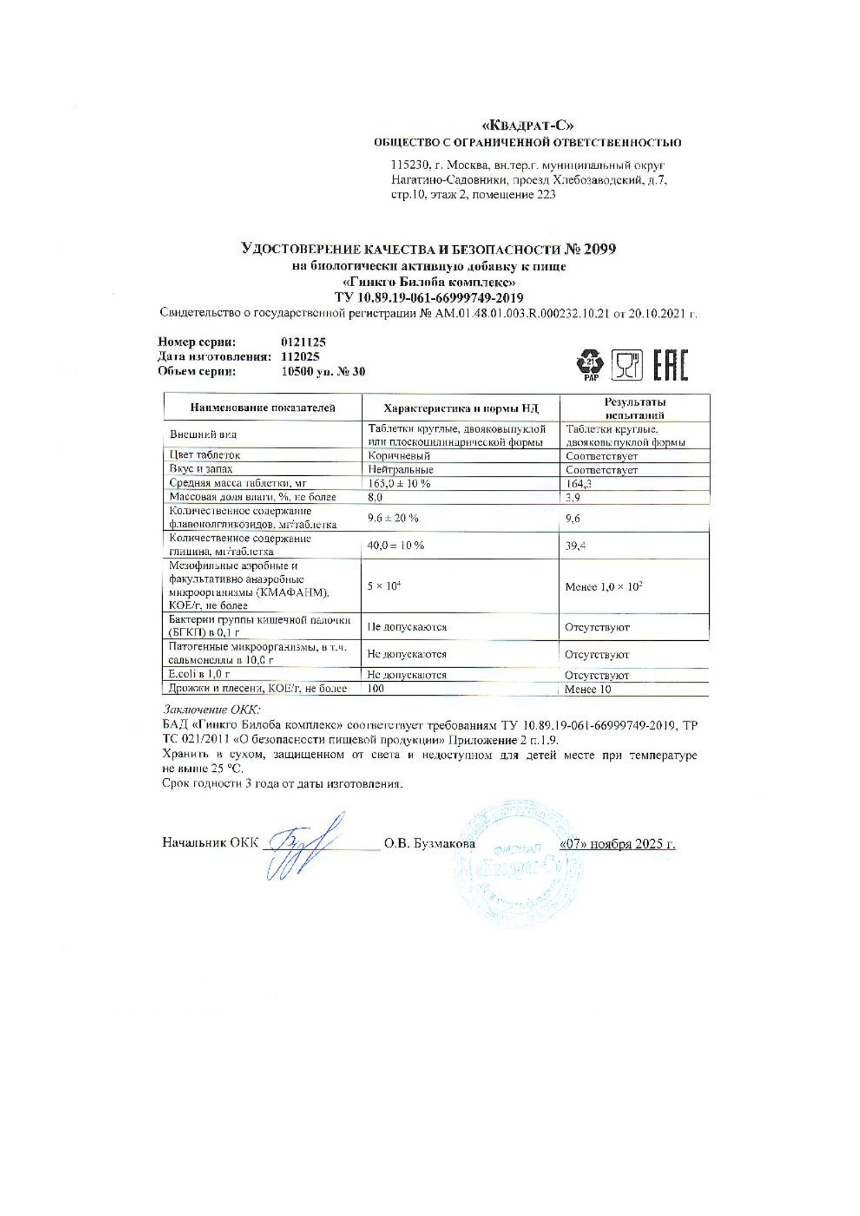 Гинкго Билоба комплекс таб. №30 х165 мг БАД "Квадрат-С"
