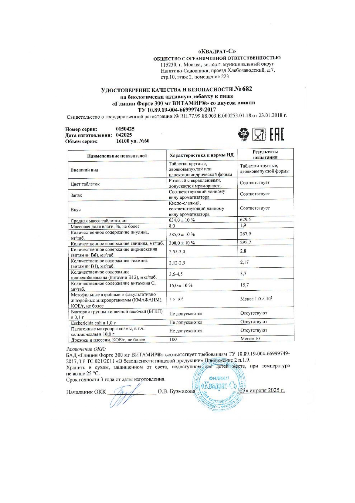 Читать далееГлицин форте 300 мг "ВИТАМИР" Вишня - БАД, № 60 табл. х 634 мг