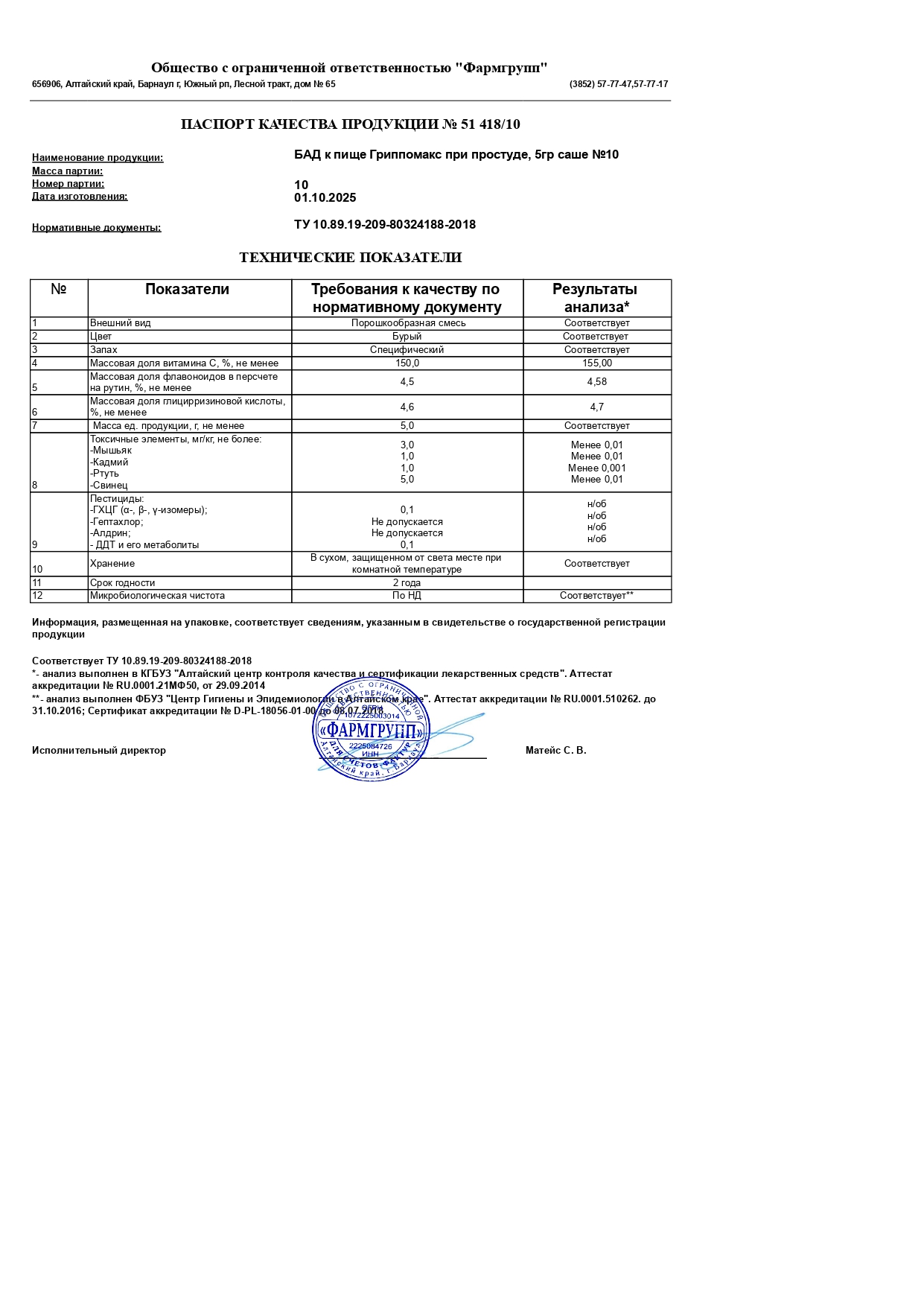 Гриппомакс при простуде, саше 5 г №10 БАД "Фармгрупп"
