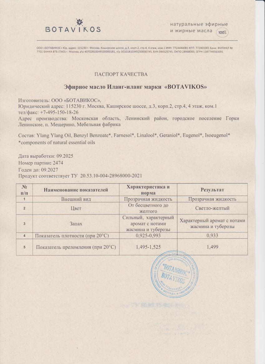 Иланг-иланг 100% эфирное масло 10 мл, "Botavikos"