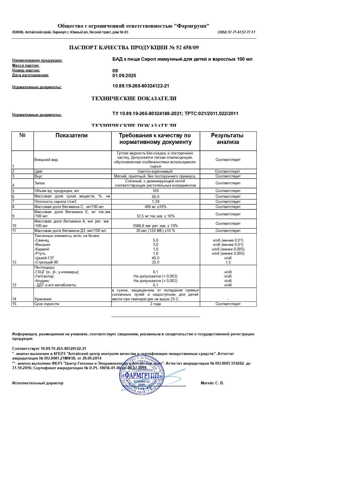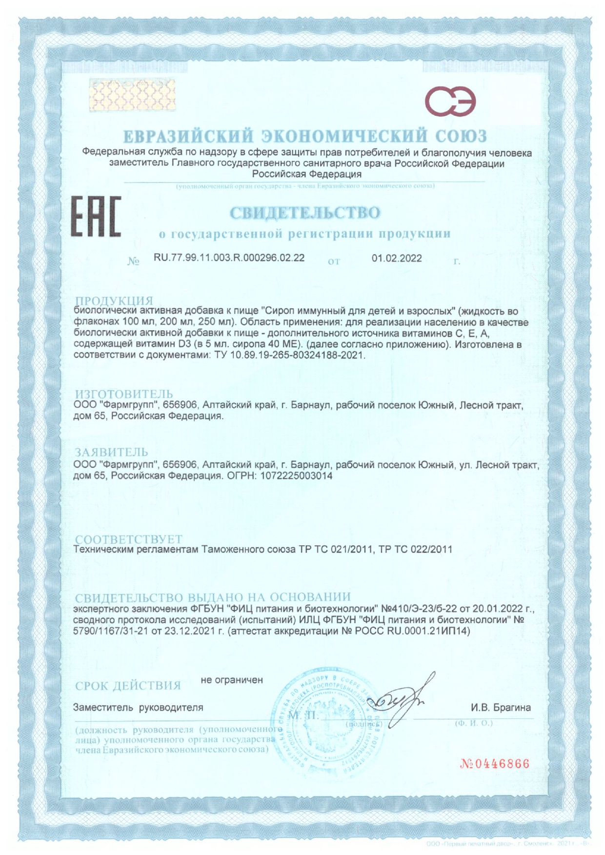 Имунный сироп для детей и взрослых 100 мл БАД "Фармгрупп"