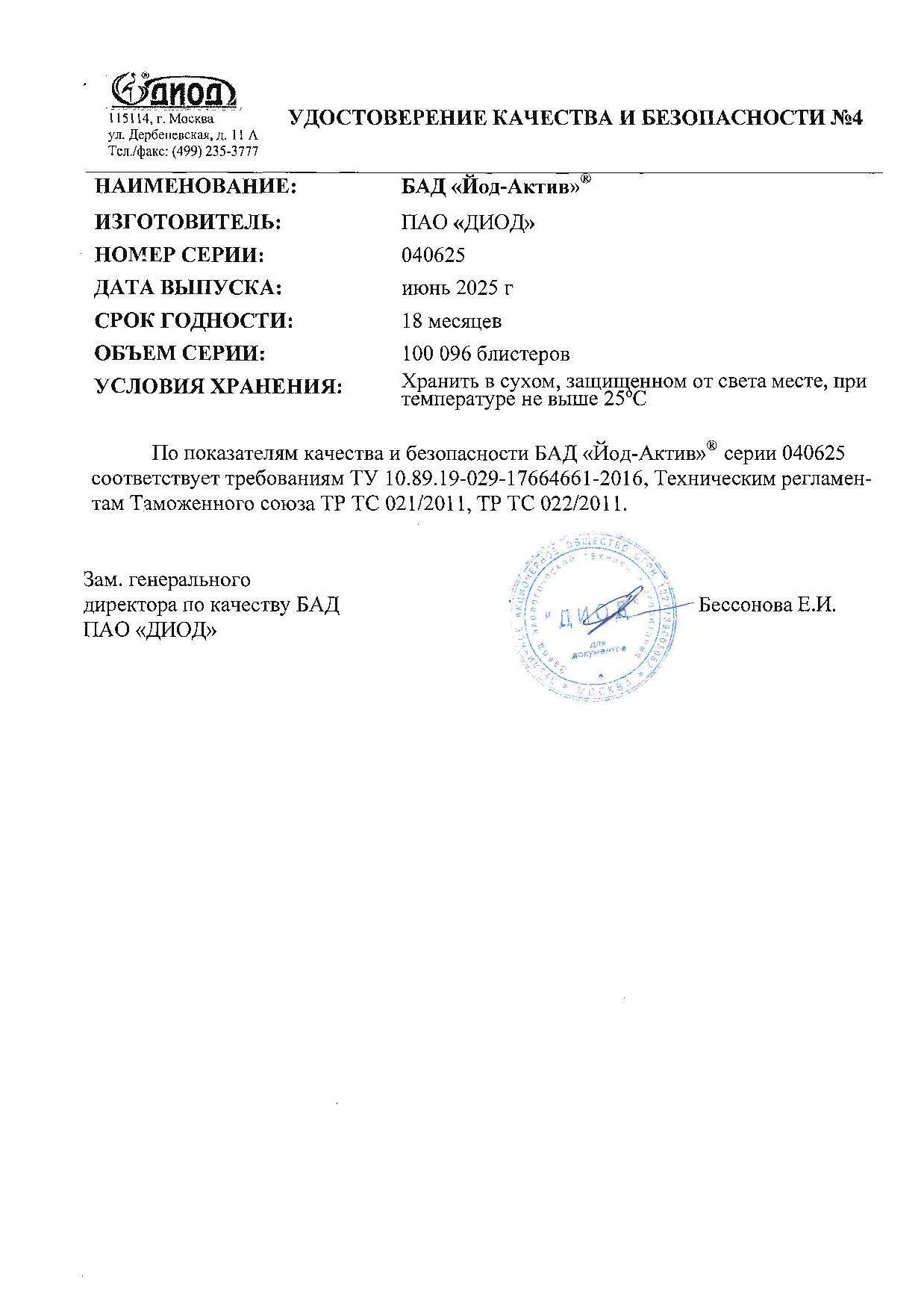 Йод - Актив рекомендован Минздравом РФ как дополнительный источник йода.