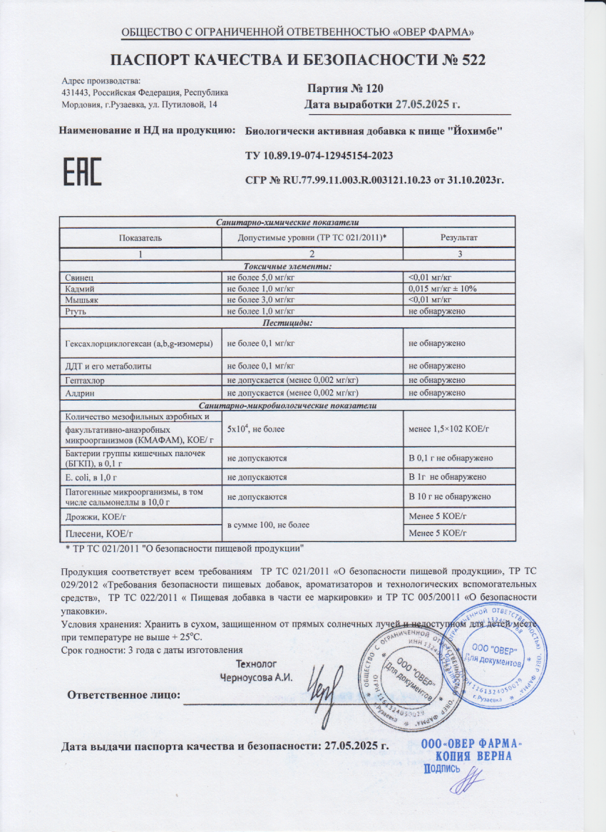 Читать далееЙохимбе 60 капсул (OVERvit) БАД