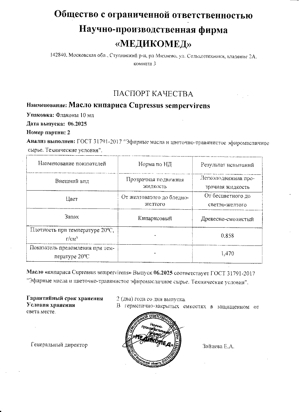 Читать далееКипарис масло 10 мл, "МедикоМед" **
