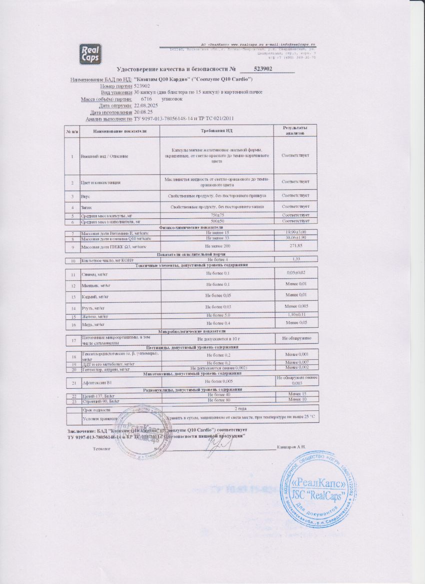 Коэнзим Q10 Кардио - БАД, № 30 капсул х 0,5 г