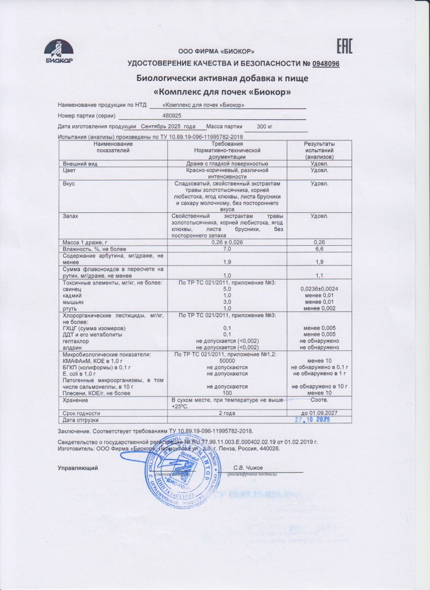 Комплекс для почек «Биокор» — комплекс, богатый арбутином и флавоноидами, который оказывает положительное влияние на мочевыделительную систему человека.