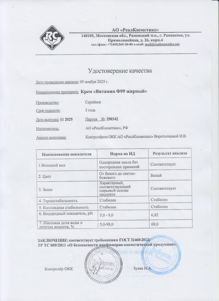 Крем Ф99 Витамин жирный 50 мл