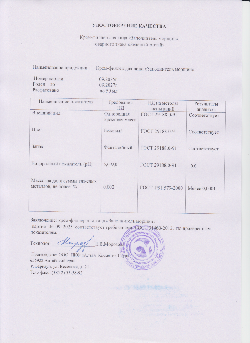 Все характеристикиКрем-филлер для лица "Заполнитель морщин" 50 мл."Зеленый Алтай"