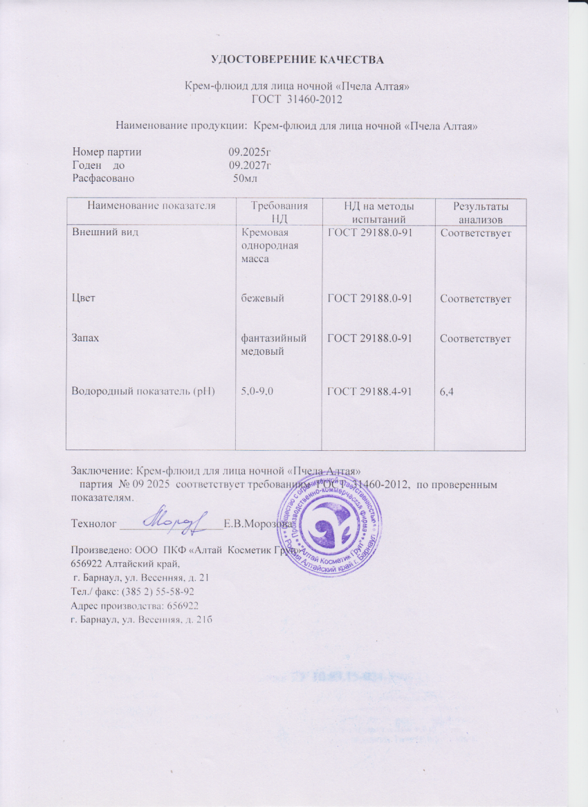 Читать далееКрем-флюид для лица ночной 50 мл "Пчела Алтая"