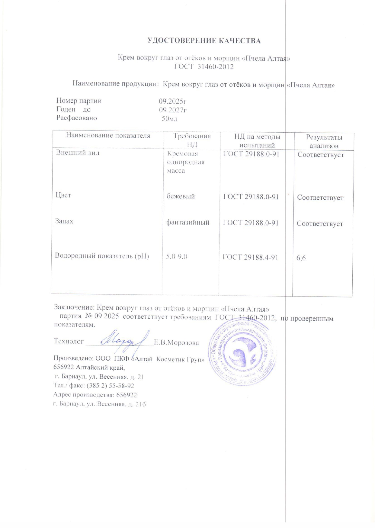 Читать далееКрем вокруг глаз от отеков и морщин 50мл "Пчела Алтая"
