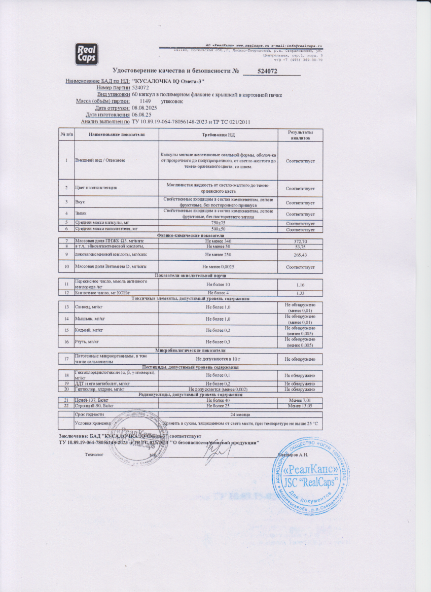 КУСАЛОЧКА IQ Омега-3 – создана для детей от 3-х лет, также подходит будущим и кормящим мамам, для гармоничного развития ребёнка.