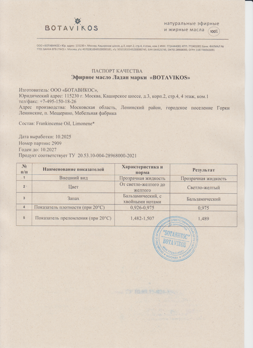 Читать далееЛадан 100% эфирное масло 10 мл, "Botavikos"