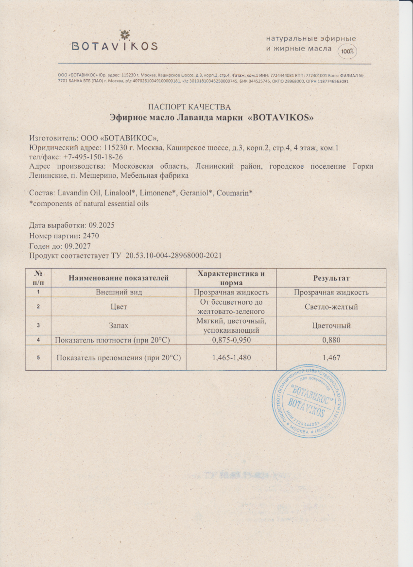 Лаванда 100% эфирное масло 10 мл, "Botavikos"