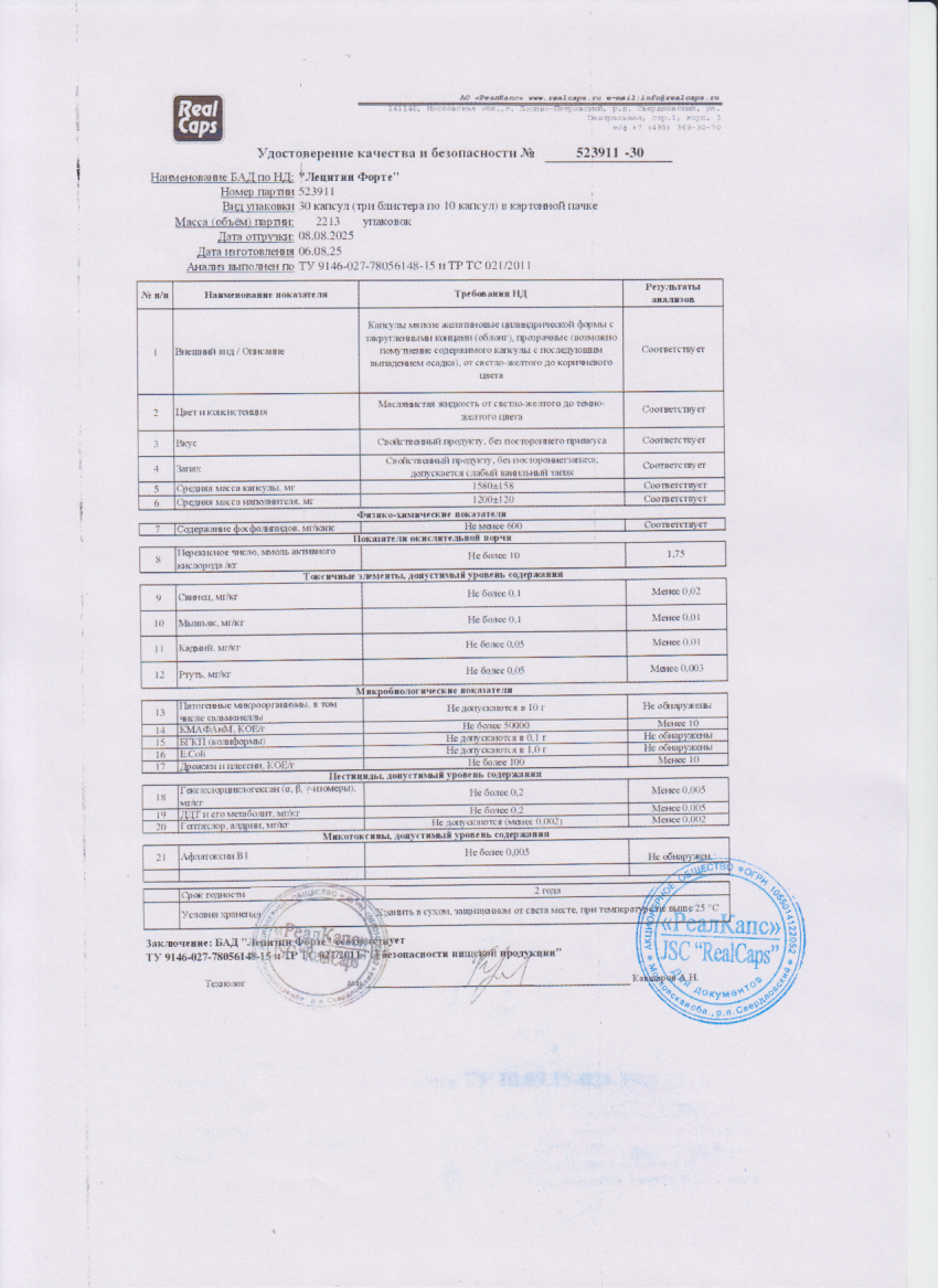 Лецитин Форте - БАД, № 30 капсул х 1,58 г