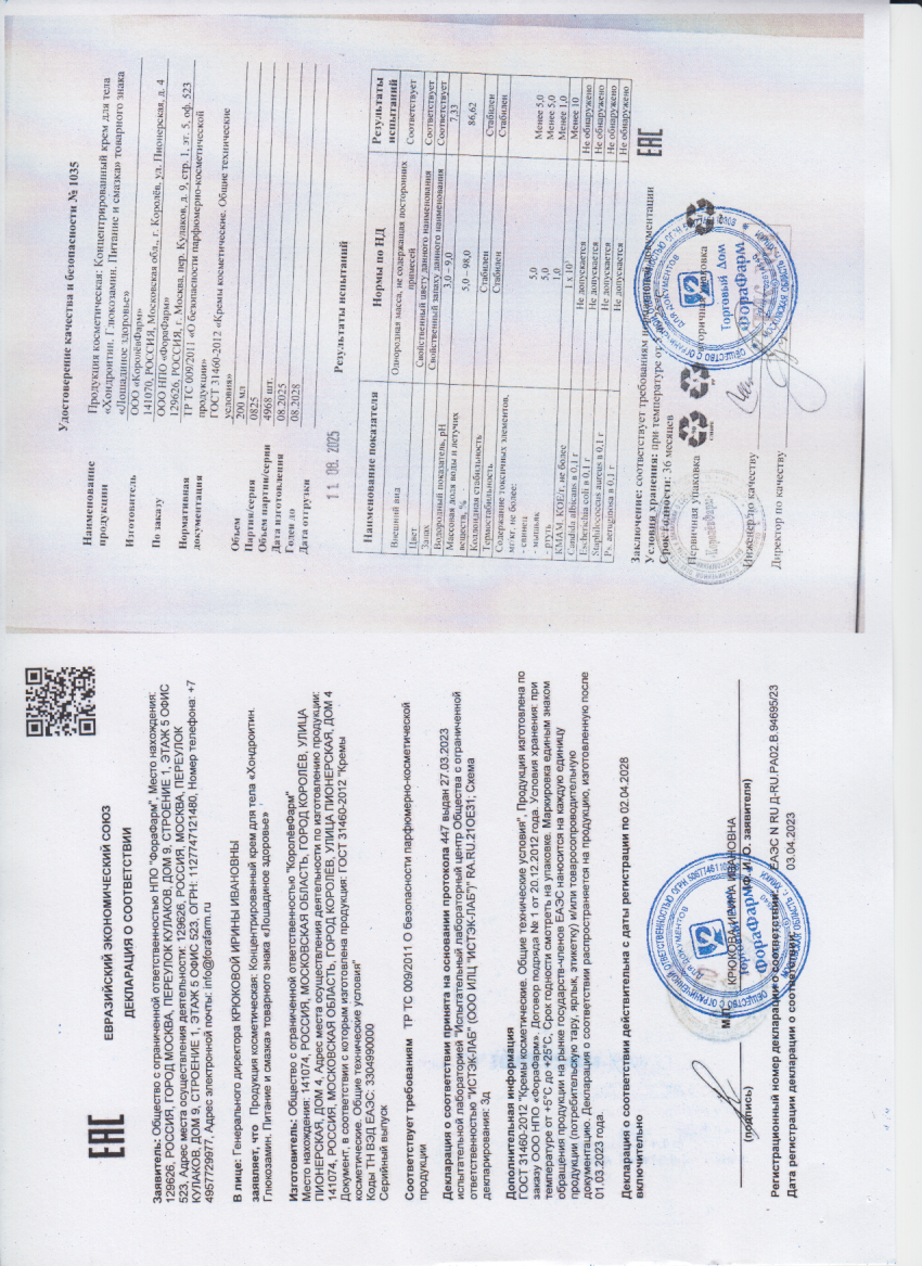 Концентрированный крем для тела в области суставов и позвоночника Лошадиная доза. Хондроитин. Глюкозамин. Питание и смазака - инновационное средство на основе хондропротекторов, коллагена и биостимулирующего комплекса витаминов группы В. Высокая концентрация активных компонентов и особая биодоступность действующих веществ обеспечивают высокую эффективность крема для предупреждения нарушений функционального состояния опорно-двигательного аппарата. Ускоряет естественные процессы регенерации хряща, тормозит возрастные дегенеративно-дистрофические процессы в суставах и позвоночнике.