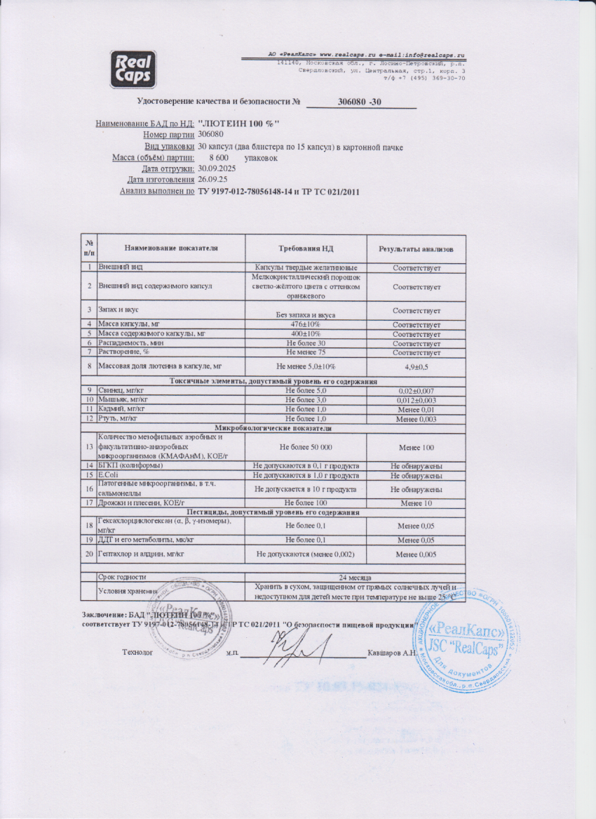 Читать далееЛютеин 100% - БАД, № 30 капсул х 476 мг