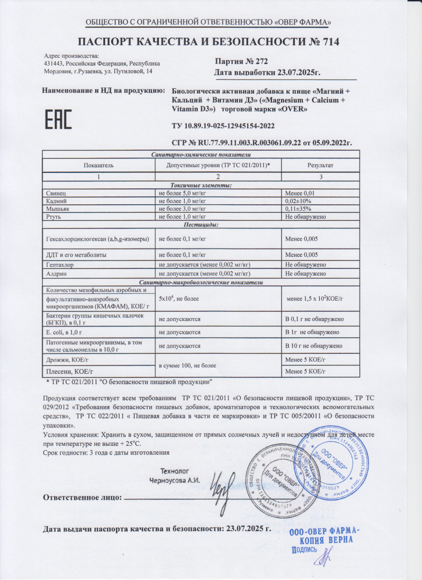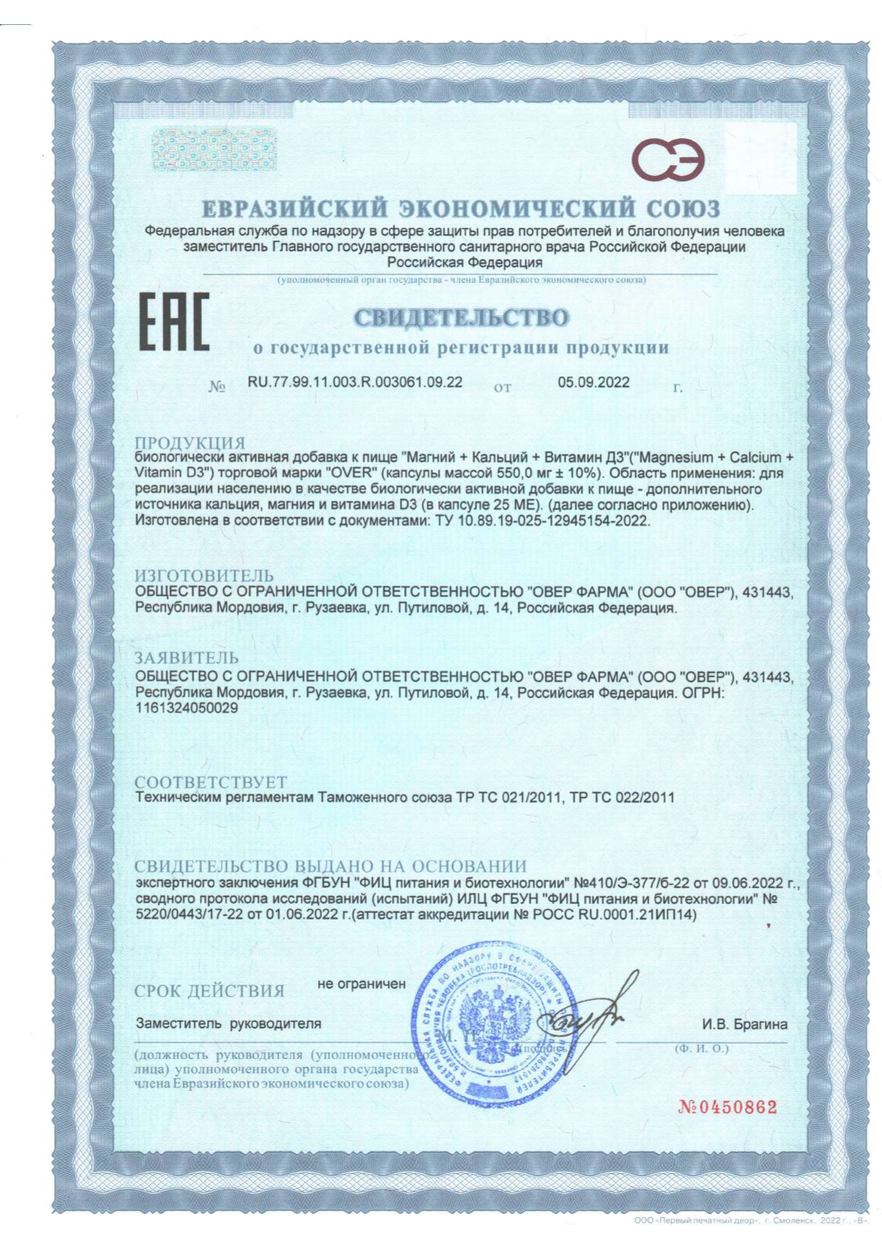 Читать далееМагний+Кальций + Витамин Д3 100 капсул (OVERVit) БАД