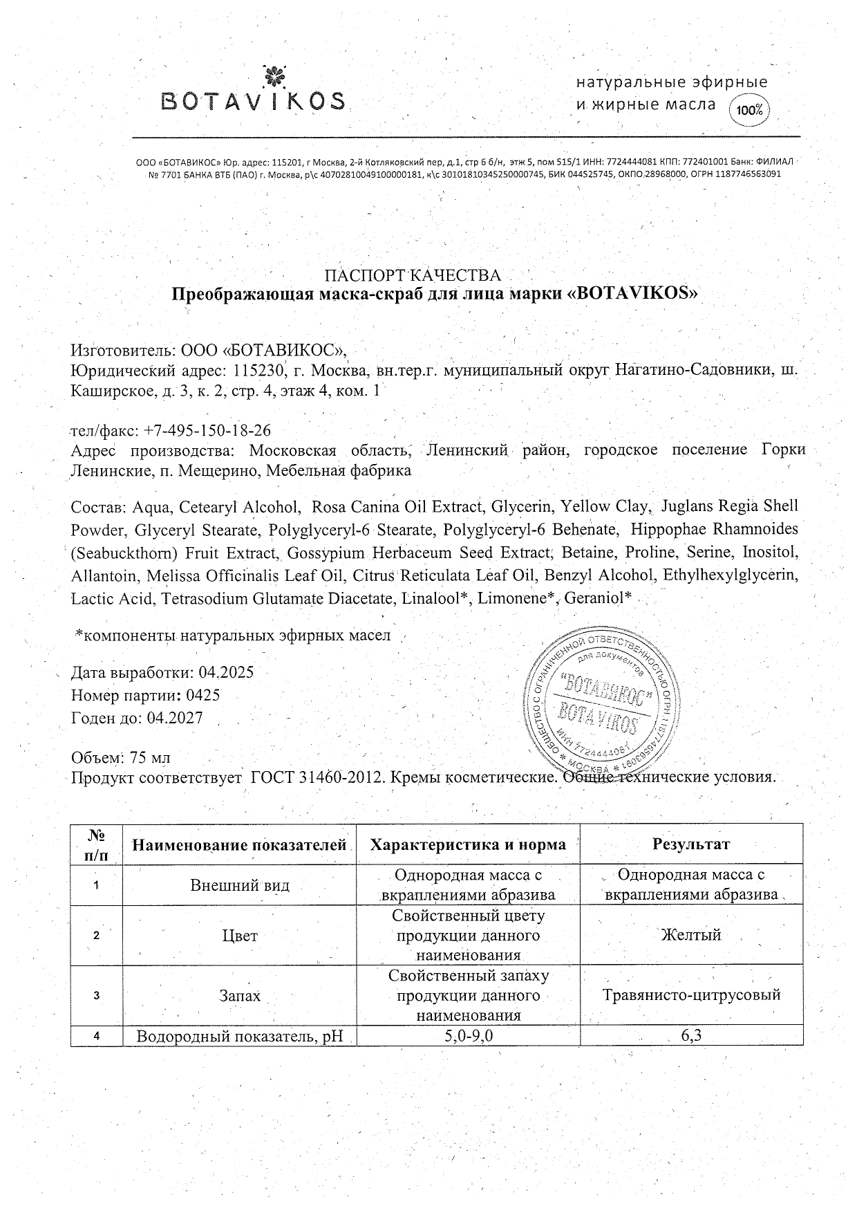 Читать далееМаска скраб для лица Преображающая Anti-stress Функциональная серия 75 мл "Botavikos" 892
