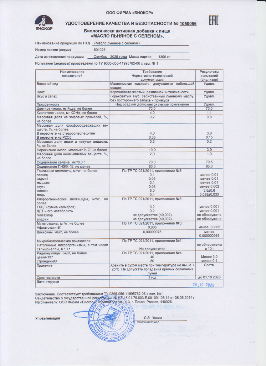 Масло льняное с селеном «Биокор» — натуральный высокоэффективный продукт, источник незаменимых полиненасыщенных жирных кислот (ПНЖК): Омега-3 (55 %) и...