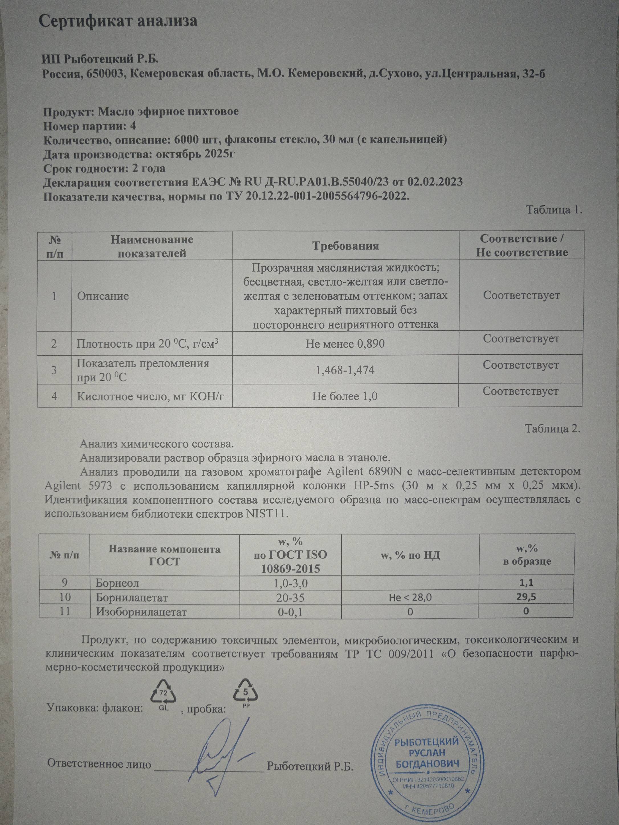 Пихтовое масло "ЭЛИТНОЕ" — натуральное эфирное масло из хвои и молодых побегов пихты сибирской. Изготовлено по уникальной технологии, позволяющей максимально сохранить нативные полезные свойства живой хвойной субстанции.